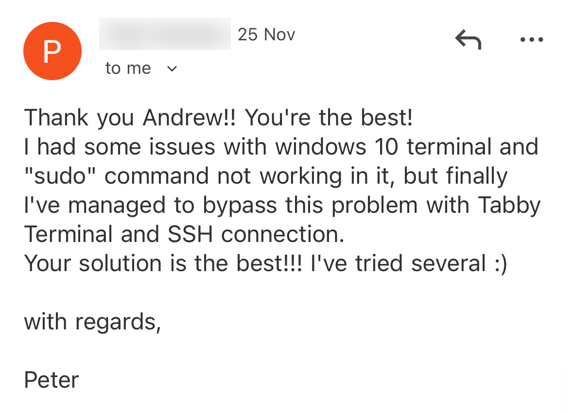 If you see “command not found” message, please install SSH client first: install SSH for windows.